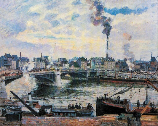 Le Grand-Pont, Rouen White Modern Wood Framed Art Print with Double Matting by Pissarro, Camille