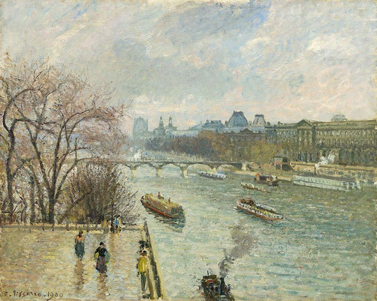 The Louvre, Afternoon, Rainy Weather White Modern Wood Framed Art Print with Double Matting by Pissarro, Camille