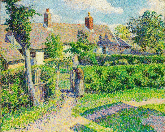 Peasants houses, Eragny White Modern Wood Framed Art Print with Double Matting by Pissarro, Camille