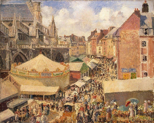 The Fair around the Saint-Jacques church, Dieppe White Modern Wood Framed Art Print with Double Matting by Pissarro, Camille