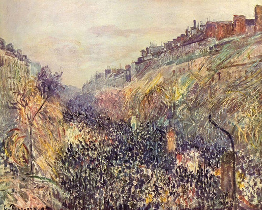 Boulevard Montmartre, Mardi Gras, at sunset White Modern Wood Framed Art Print with Double Matting by Pissarro, Camille