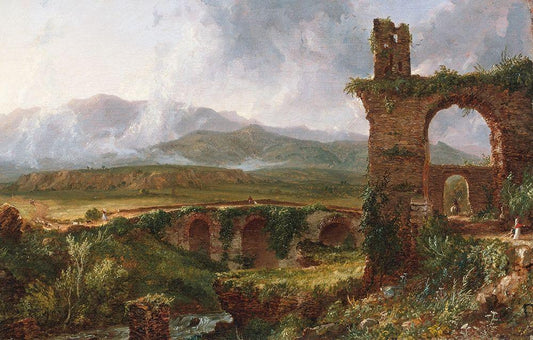 A View near Tivoli (Morning) White Modern Wood Framed Art Print with Double Matting by Cole, Thomas