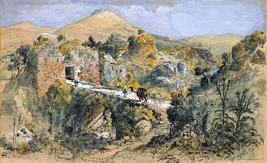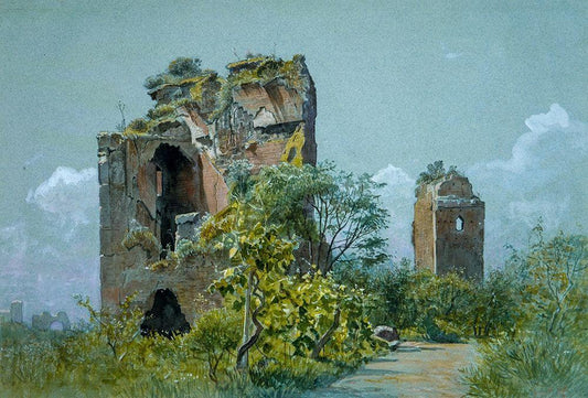 Baths of Trajan (Sette Sale, Villa Brancaccio, Rome) White Modern Wood Framed Art Print with Double Matting by Haseltine, William Stanley