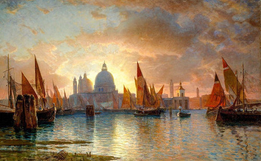 Santa Maria della Salute, Sunset White Modern Wood Framed Art Print with Double Matting by Haseltine, William Stanley