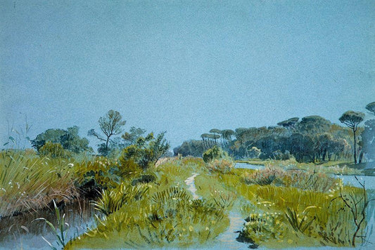 Castel Fusano—Near Rome White Modern Wood Framed Art Print with Double Matting by Haseltine, William Stanley
