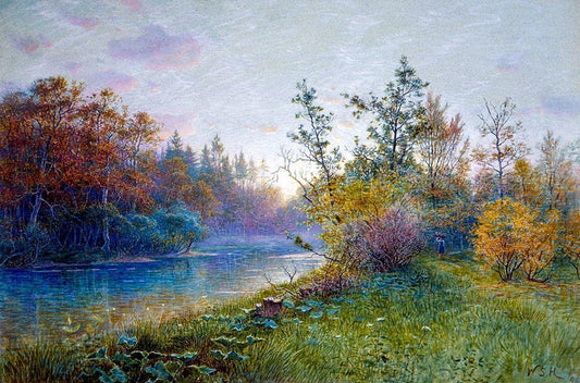Mill Dam in Traunstein White Modern Wood Framed Art Print with Double Matting by Haseltine, William Stanley