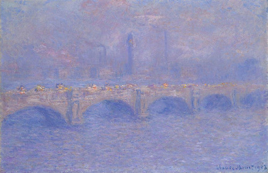 Waterloo Bridge, Gray Weather White Modern Wood Framed Art Print with Double Matting by Monet, Claude