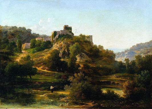 Chateauvieux-sur-Suran White Modern Wood Framed Art Print with Double Matting by Ponthus-Cinier, Antoine-Claude