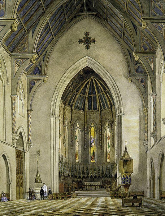 Chancel of Trinity Chapel, New York 1856 White Modern Wood Framed Art Print with Double Matting by Hill, John William