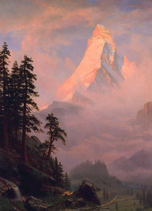 Sunrise on the Matterhorn 1875 White Modern Wood Framed Art Print with Double Matting by Bierstadt, Albert