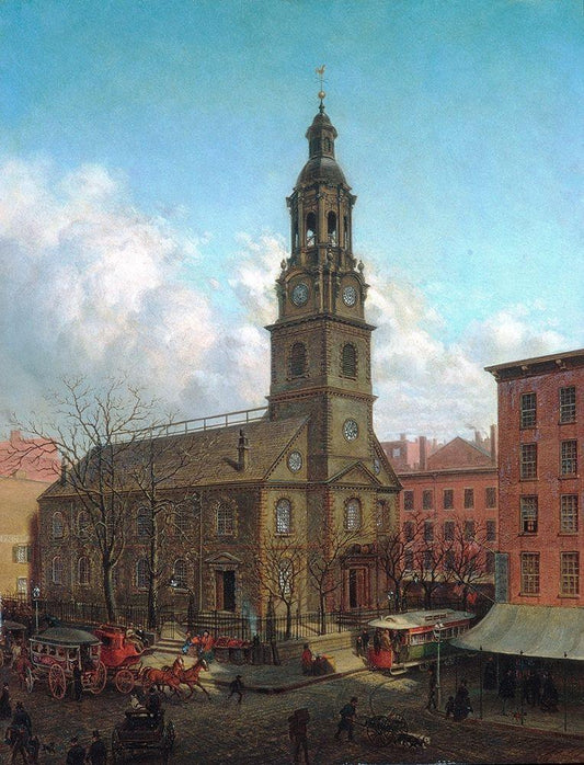 The North Dutch Church, Fulton and William Streets, New York 1869 White Modern Wood Framed Art Print with Double Matting by Henry, Edward Lamson