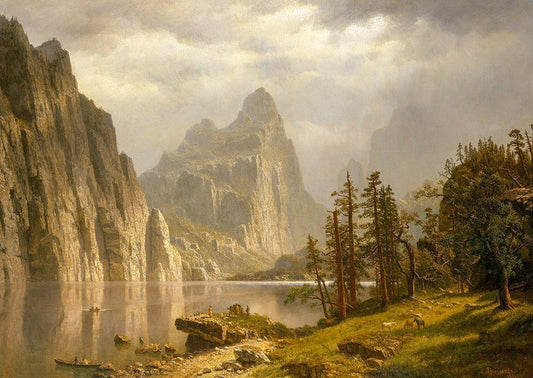 Merced River, Yosemite Valley White Modern Wood Framed Art Print with Double Matting by Bierstadt, Albert
