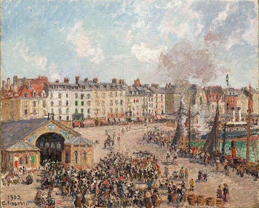 Fishmarket White Modern Wood Framed Art Print with Double Matting by Pissarro, Camille