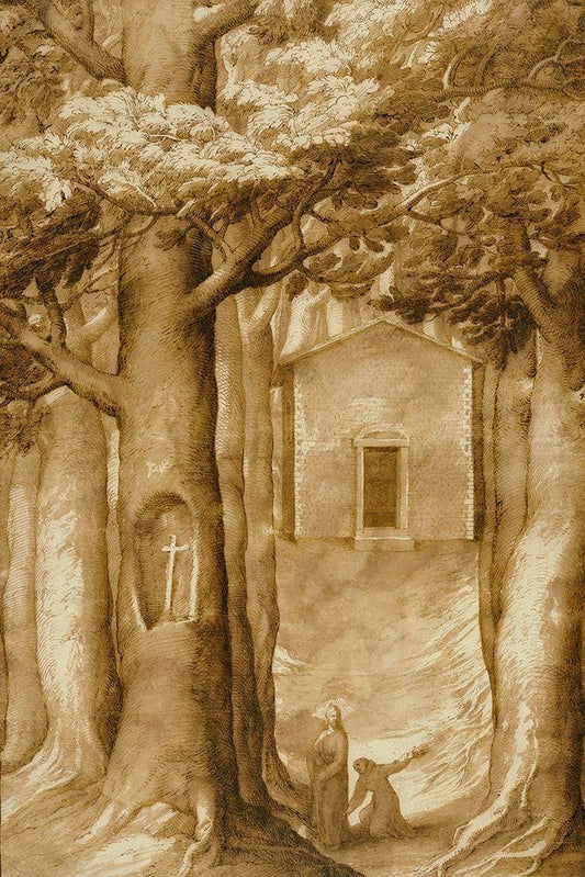 La Verna: The Chapel of the Blessed Giovanni della Verna White Modern Wood Framed Art Print with Double Matting by Ligozzi, Jacopo
