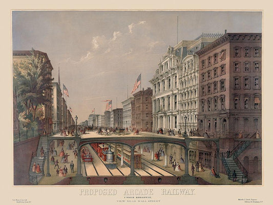 Elevated Railway Near Wall Street White Modern Wood Framed Art Print with Double Matting by Unknown