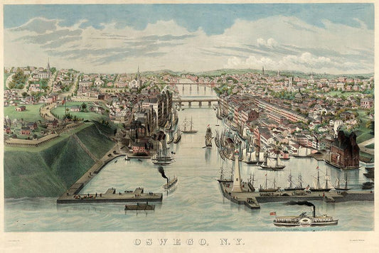 Oswego New York Harbor White Modern Wood Framed Art Print with Double Matting by Unknown
