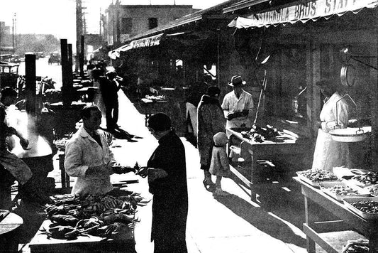 Wharf Street, San Francisco, CA White Modern Wood Framed Art Print with Double Matting by Vintage San Francisco
