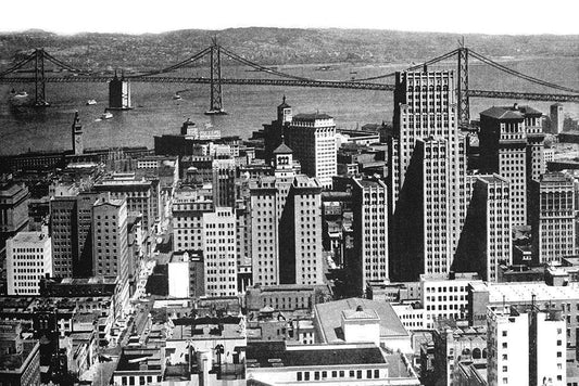 Oakland Bay Bridge, San Francisco, CA #1 White Modern Wood Framed Art Print with Double Matting by Vintage San Francisco