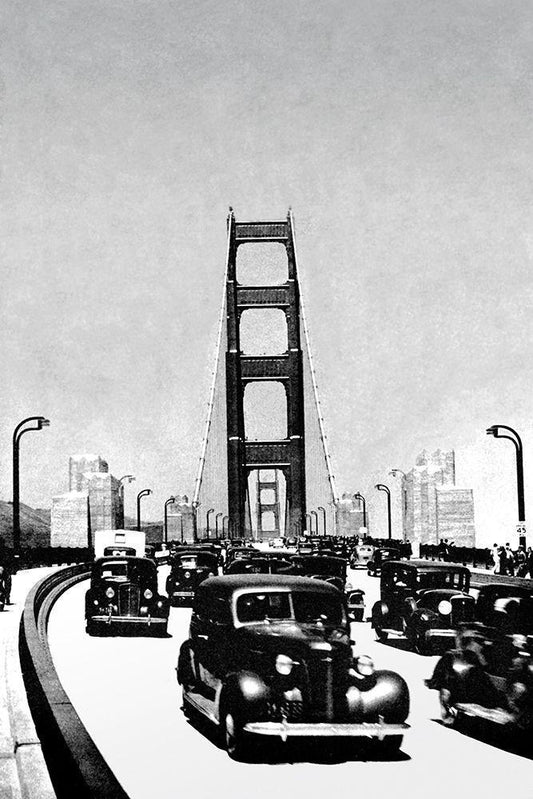 The Golden Gate Bridge, San Francisco, CA White Modern Wood Framed Art Print with Double Matting by Vintage San Francisco