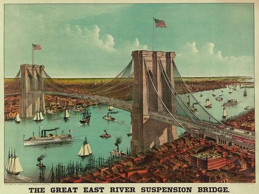 Brooklyn Bridge White Modern Wood Framed Art Print with Double Matting by Unknown