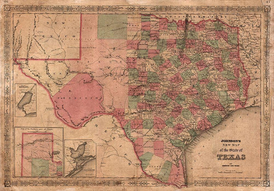 1866 Johnson Map of Texas White Modern Wood Framed Art Print with Double Matting by Johnson
