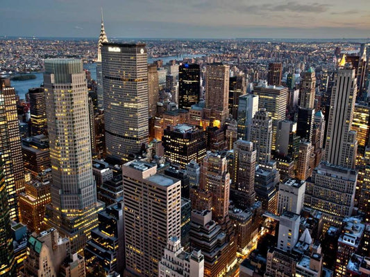 Midtown Manhattan at Sunset NYC Black Ornate Wood Framed Art Print with Double Matting by Berenholtz, Richard