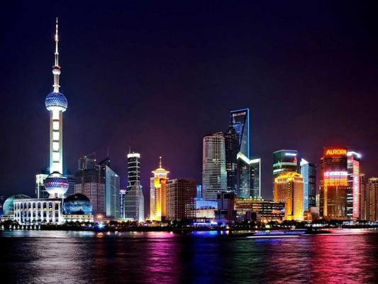 Shanghai at night Black Ornate Wood Framed Art Print with Double Matting by Ratsenskiy, Vadim