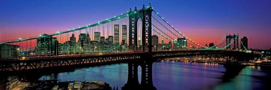 Manhattan Bridge and Skyline Black Ornate Wood Framed Art Print with Double Matting by Berenholtz, Richard