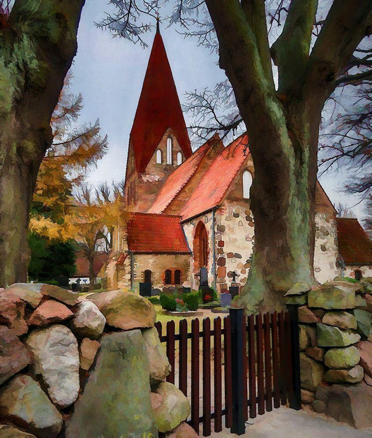 Hidden Village White Modern Wood Framed Art Print with Double Matting by Bolokofsky, Ronald