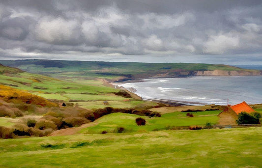 Robin Hoods Bay White Modern Wood Framed Art Print with Double Matting by Bolokofsky, Ronald