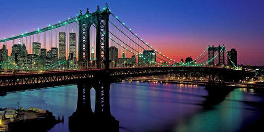 Manhattan Bridge and Skyline Black Ornate Wood Framed Art Print with Double Matting by Berenholtz, Richard