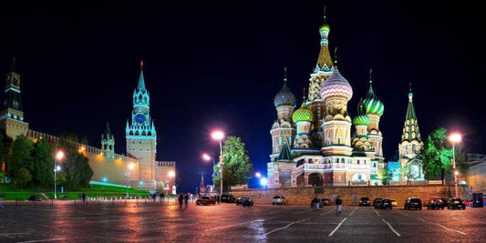 Red Square at night Moscow Black Ornate Wood Framed Art Print with Double Matting by Ratsenskiy, Vadim