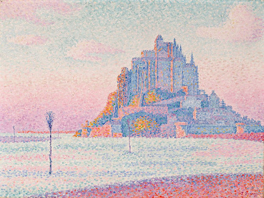 Mont Saint-Michel, Setting Sun Black Ornate Wood Framed Art Print with Double Matting by Signac, Paul