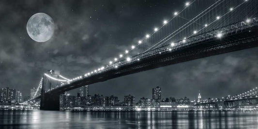 Brooklyn Bridge at Night - New York Black Ornate Wood Framed Art Print with Double Matting by Lacis, Janis