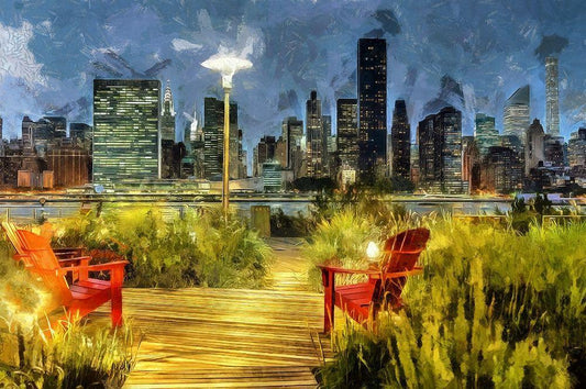 Across the Hudson White Modern Wood Framed Art Print with Double Matting by Bolokofsky, Ronald