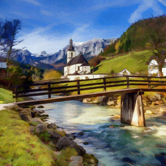 Chapel On the River II White Modern Wood Framed Art Print with Double Matting by Bolokofsky, Ronald