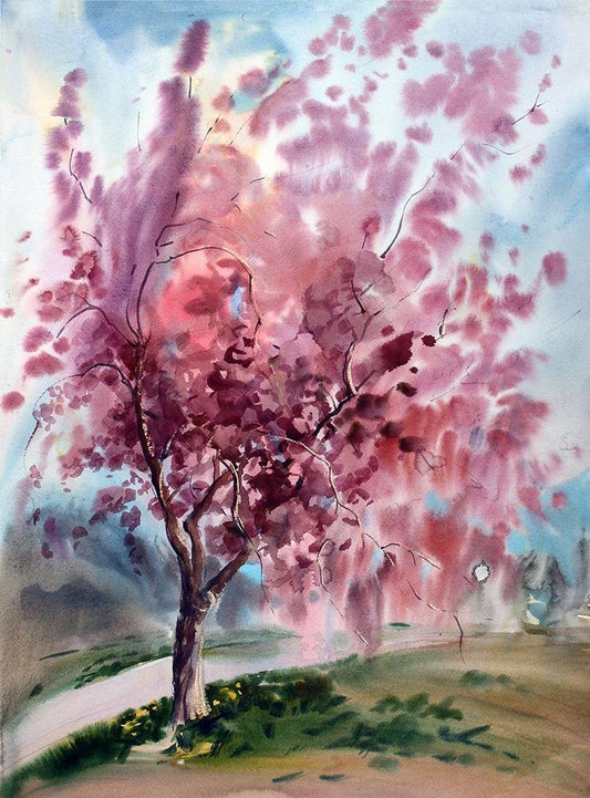 Cherry Blossoms II White Modern Wood Framed Art Print with Double Matting by Bolokofsky, Ronald