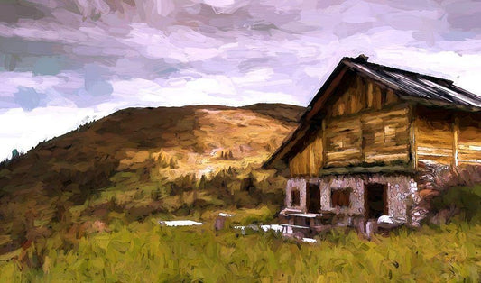 Dolomites Cabin White Modern Wood Framed Art Print with Double Matting by Bolokofsky, Ronald