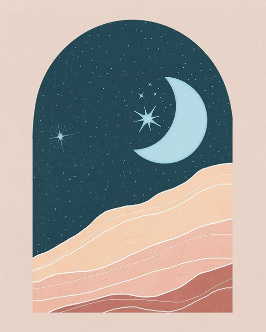 Boho Moon Black Ornate Wood Framed Art Print with Double Matting by Blue, Nina