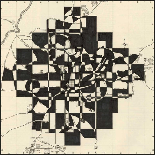 Modern Map of Atlanta Black Ornate Wood Framed Art Print with Double Matting by Galapon, Nikki