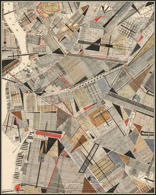 Modern Map of Brooklyn Black Ornate Wood Framed Art Print with Double Matting by Galapon, Nikki