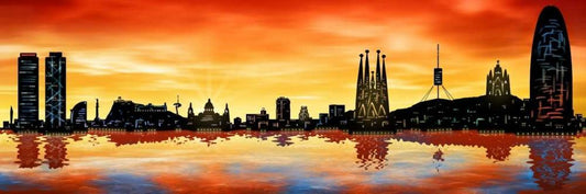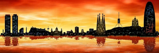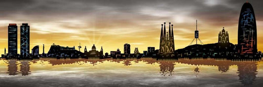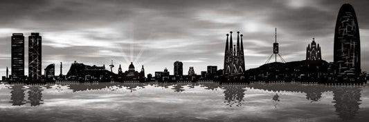Skyline Barcelona 01 Black Ornate Wood Framed Art Print with Double Matting by Ferriz, Jose