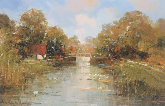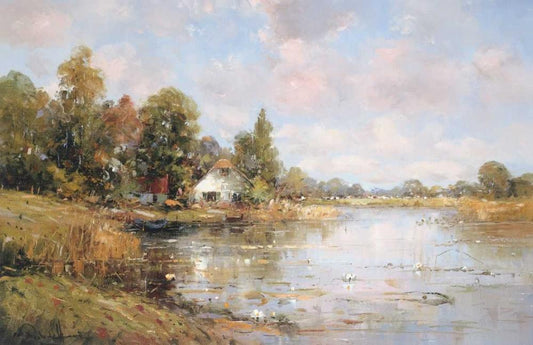 Aan de Waterkant I Black Ornate Wood Framed Art Print with Double Matting by De Haan, Rob