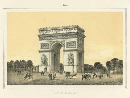 Arc de Triomphe Black Ornate Wood Framed Art Print with Double Matting by Rogers, Adam