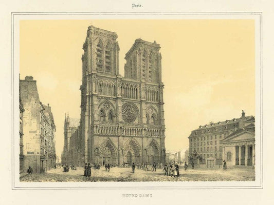 Notre Dame Black Ornate Wood Framed Art Print with Double Matting by Anonymous