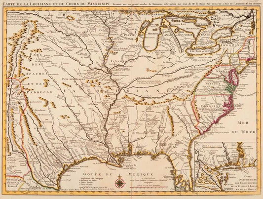 Rivers of America 1720 Black Ornate Wood Framed Art Print with Double Matting by LIsle, Guillaume