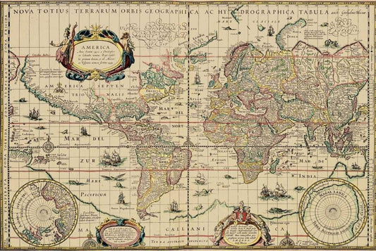 Explorers World 1630 Blau Black Ornate Wood Framed Art Print with Double Matting by Jansz, Willem