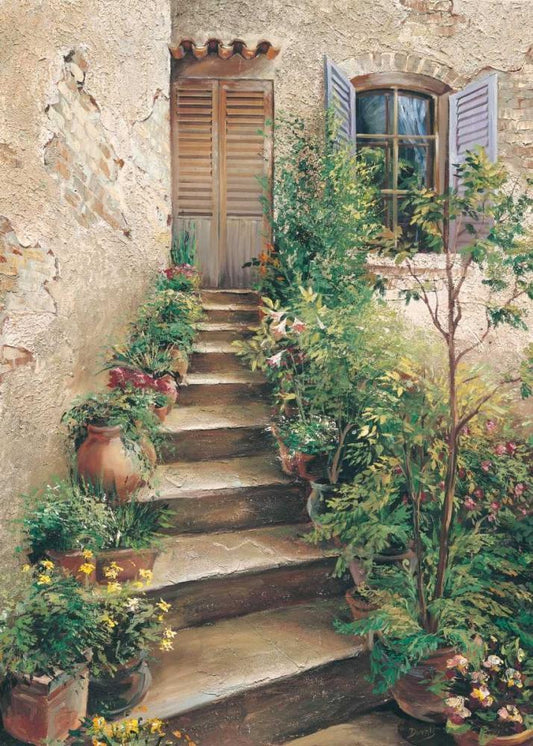 Stairway in Provence Black Ornate Wood Framed Art Print with Double Matting by Duvall, Roger