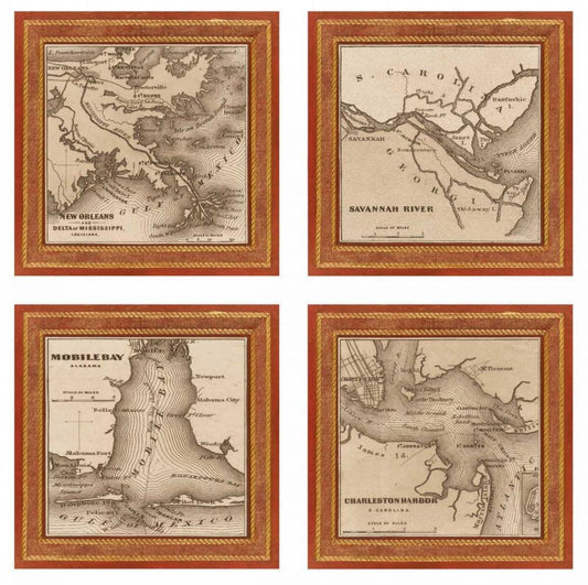 Southern Harbors 1860 Black Ornate Wood Framed Art Print with Double Matting by Johnson, Andrew