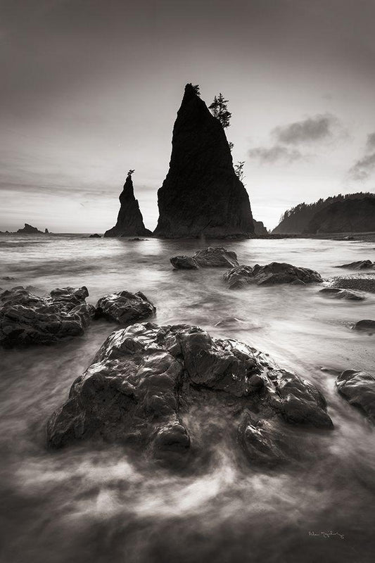 Split Rock Rialto Beach Black Ornate Wood Framed Art Print with Double Matting by Majchrowicz, Alan